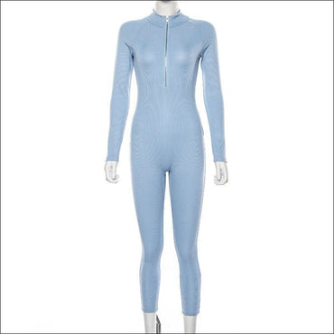Long-sleeve Zipper Knitted Tight Jumpsuits
