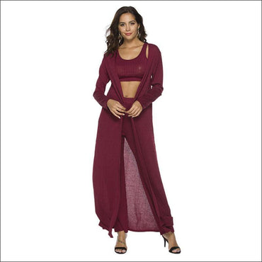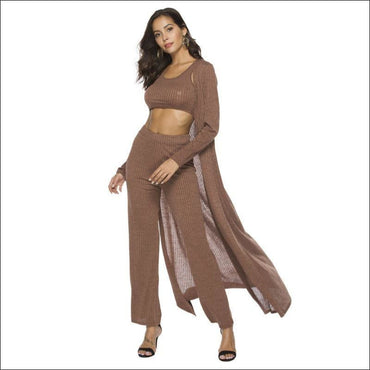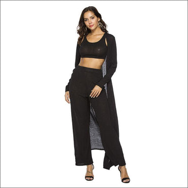 Loose Pants Long-sleeve Cardigan Casual Crop Top 3pcs/set
