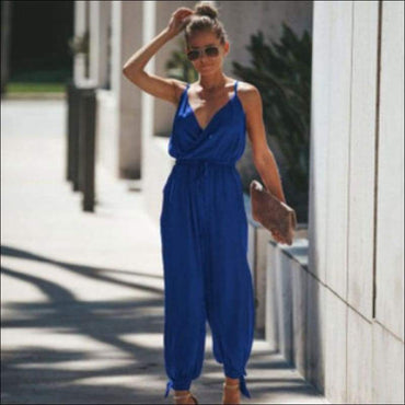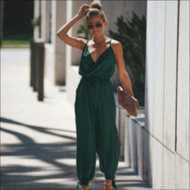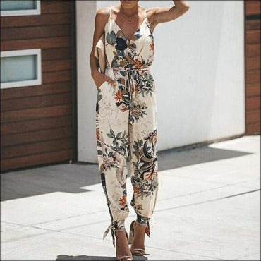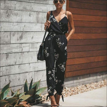Loose Pattern Women Spaghetti Strap Surplice Jumpsuits
