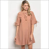 Short sleeve lace-up detail tunic dress. A plain design dress that looks fabulous in every age. Its nude design is eye soothing that also feels comfy in every wear. It worth having a dress it is! Hurry and have yours. Don't miss out!