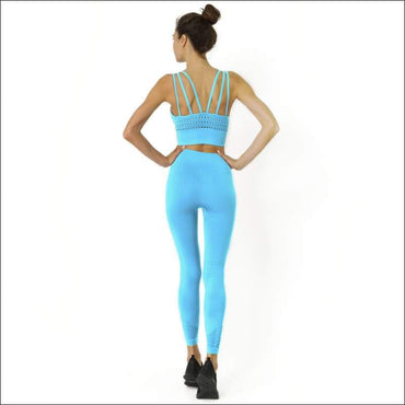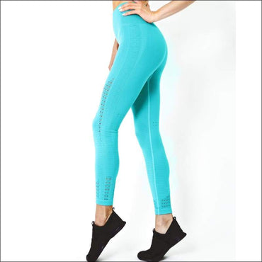 Mesh Seamless Legging with Ribbing Detail - Aqua