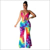 Multicolor Tie-dye Design Women Cropped Strappy Top Flare Pants Set
