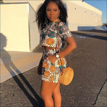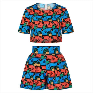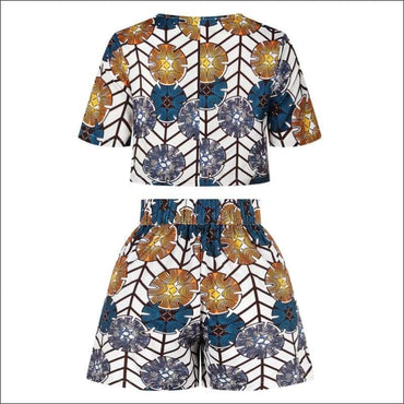 Neckline Print Short Top And High-waisted Shorts