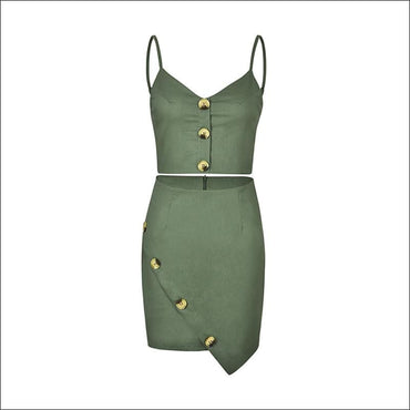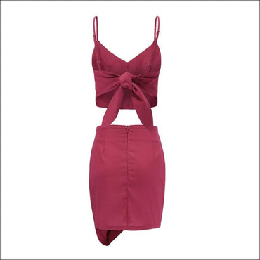 Night Club Backless Sleeveless Strap Tank Tops And Wrap Skirt 2Pcs Set
