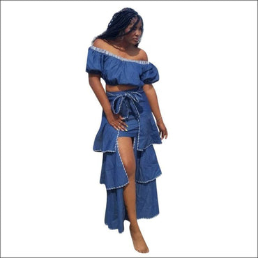 Off-shoulder Cropped Top Flouncing Irregular Hemline Maxi Skirt