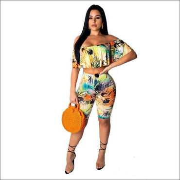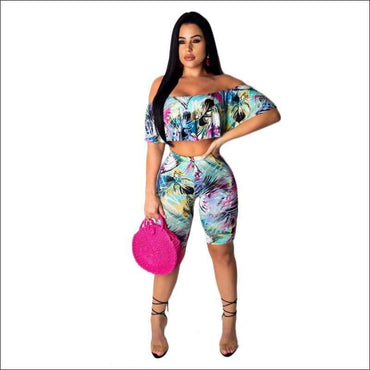 Off-shoulder Cropped Top Tight Shorts