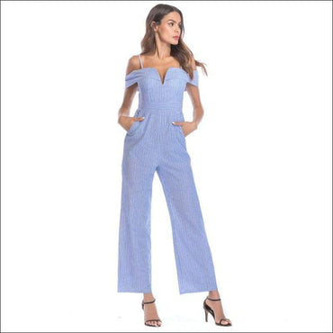 Off-shoulder Spaghetti Strap Stripes Pattern Wide-leg Jumpsuits