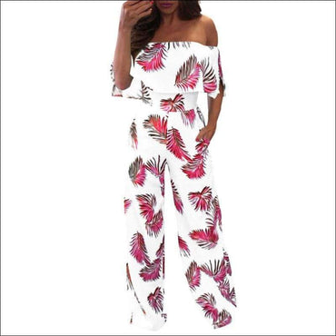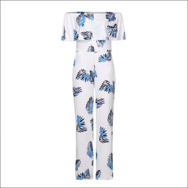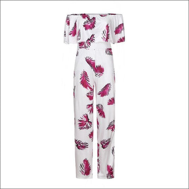 Off Shoulder Wide-leg Leaves Printed Ruffled Jumpsuits