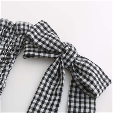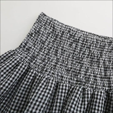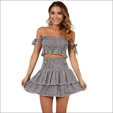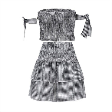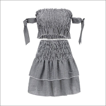 Off-the-shoulder Checkered Print Crop Tops And Tiers Skirt Set