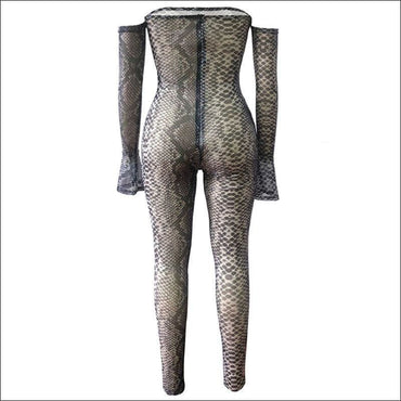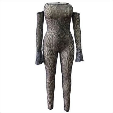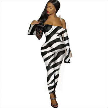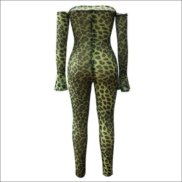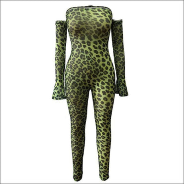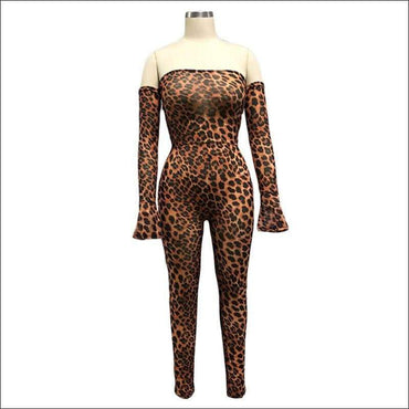 Off-the-shoulder Flare Sleeve Animal Print Jumpsuits