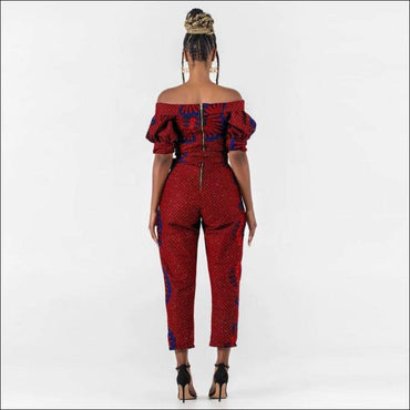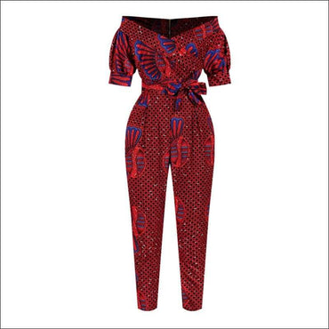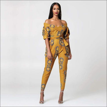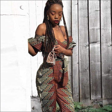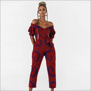 Off-the-Shoulder Lantern Sleeve Lace-up Jumpsuits