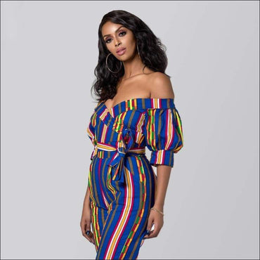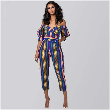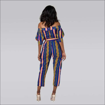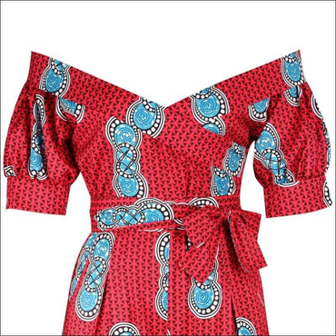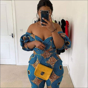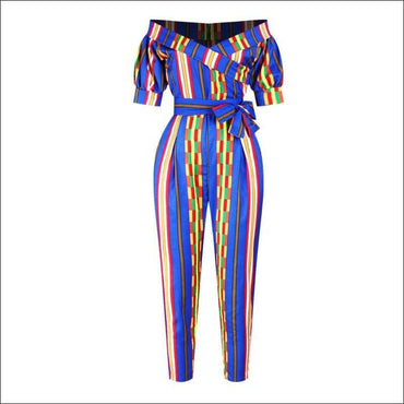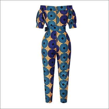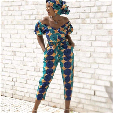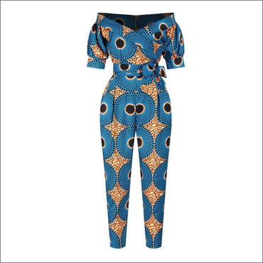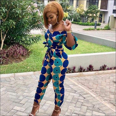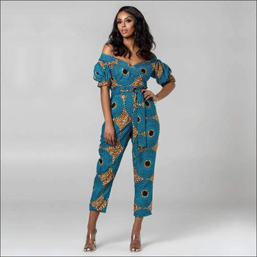 Off-the-Shoulder Lantern Sleeve Print Lace-up Jumpsuits