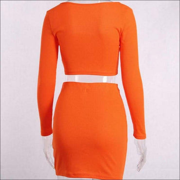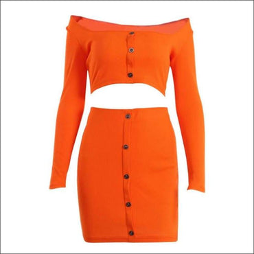 Off-the-Shoulder Long-sleeve Top And Single-breasted Bodycon Skirt
