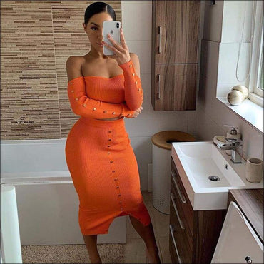 Off-the-Shoulder Long-sleeve Top High-waisted Bodycon Skirt