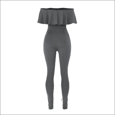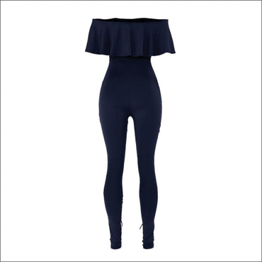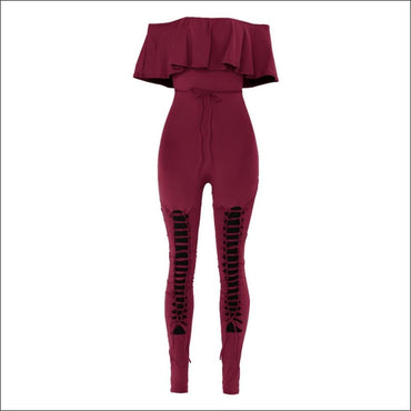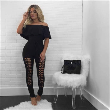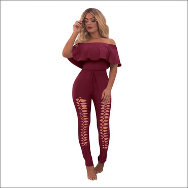 Off-the-Shoulder Ruffle Hollow Tight Jumpsuits