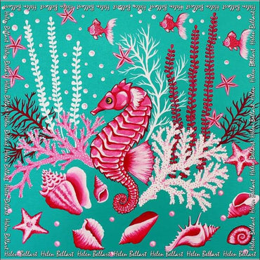 Pink Seahorse Silk Scarf 45 x 45 cm