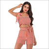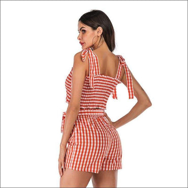 Plaid Print Ruffled Cropped Camisole Lace-up Shorts Two-piece Set